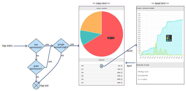 처음 작업할때는 android studio에서 작업해서 phone 이나 emulator 에 띄워서 html/javascript test 했다. 한번 build 해서 올리고 logcat 으로 확인하고 debugging 하는 게 생각보다 시간도 걸리고 귀찮은 작업이다. 어차피 html/javascript 이니 PC 상에서 작업하고, PC browser 에서 바로 확인하는 방법을 아래와 같이 사용했다. UI 작업은 많이 편해지고, chrome/firefox 의 개발자모드에서 바로 log 등을 확인할 수 있는 장점도 있다.<< index.html / detail.html header >>